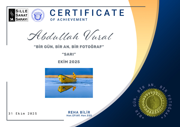 Abdullah Vural’ın fotoğrafı, “sarı” rengini yalnızca bir renk olarak değil; umudu, dayanıklılığı ve sıcaklığı simgeleyen bir anlatım diliyle sunması sayesinde öne çıktı. Teknik başarı ile sanatsal derinliği bir araya getiren bu çalışma, Ekim ayının kazananı olarak Sille Sanat Sarayı Altın Madalya kazandı.