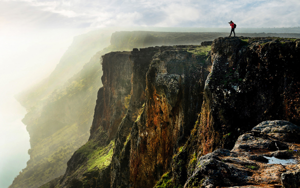 Yumuşak sabah ışığı ve sisle oluşan katmanlı derinlik, gece ile gündüz arasındaki geçişi görünür kılarken; uçurum çizgilerinin yönlendirdiği kompozisyon, izleyicinin bakışını kadrajın kenarında konumlanan figüre taşır. Figürün doğa karşısındaki küçük ölçeği, bir hâkimiyet duygusu yaratmak yerine tanıklık hissini güçlendirir. Fotoğraf, insanın güne başlamadan önceki ilk duruşunu, ilk bakışını ve henüz yaşanmamış bir günün taşıdığı olasılıkları yalın ama güçlü bir görsel dil ile ifade eder.