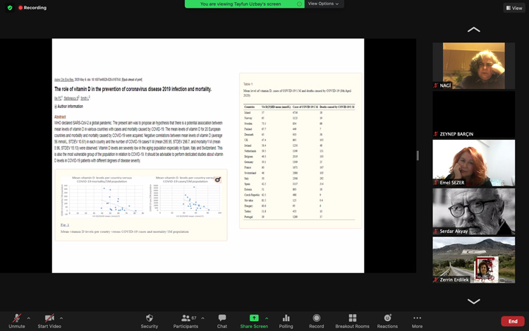 Bu akşam gerçekleştirdiğimiz toplantıda Prof. Dr. Tayfun Uzbay Covid -19 hakkında hepimizi bilgilendirdi. Tayfun Uzbay'ın "Komplo Teorileri Gölgesinde Covid -19 Tartışmaları" isimli söyleşisinde tane tane anlattığı gerçek bilgileri soluksuz izledik. Programa katılan izleyenlerin merak ettikleri soruları sabırla tek tek yanıtlayan Tayfun Uzbay'ın bilgilendirme programı 2 saat sürdü. Sonuç olarak Covid - 19'a karşı bilimin ışığında aydınlandık.